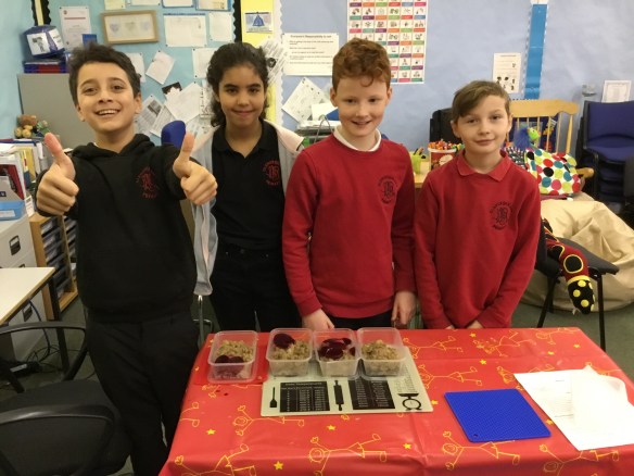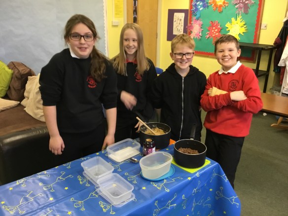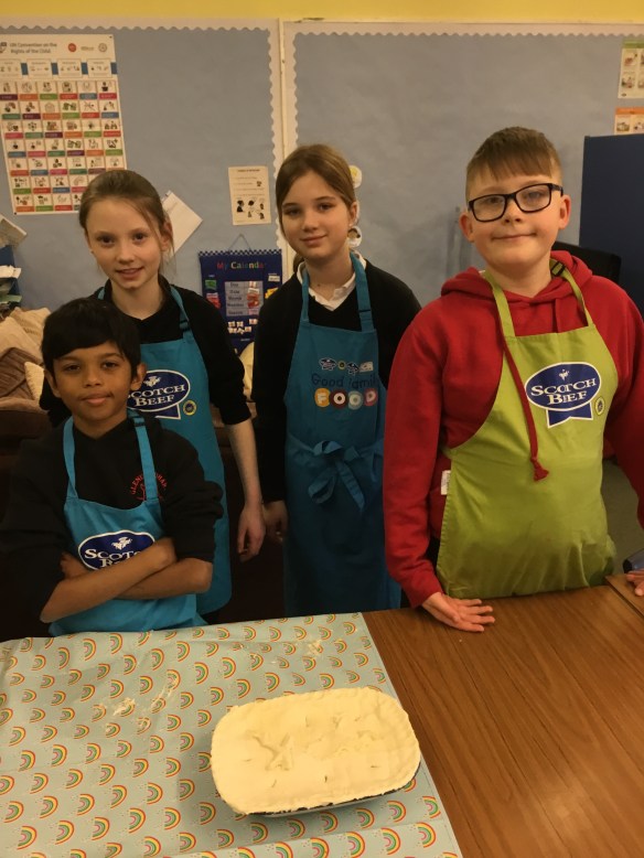 Those who completed their recipes played “Foodbusters” and/or “Bubbles and slime” to revise their food hygiene knowledge. Some of the P7s demonstrated excellent recall of last term’s food hygiene training and previous science work with Mrs Mann. 🙂 (Ms Young and Miss Mullin felt really old when none of the P7s recognised the “Blockbusters” theme tune!)