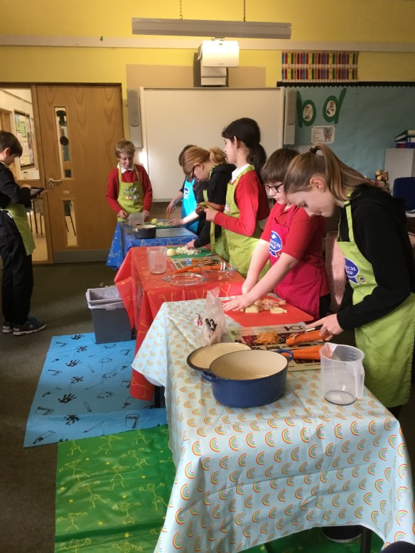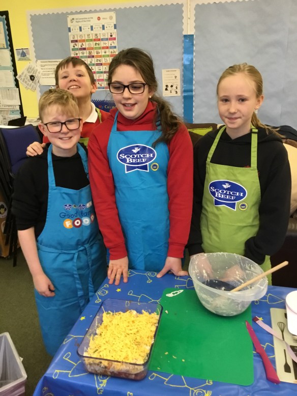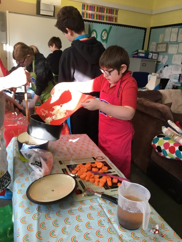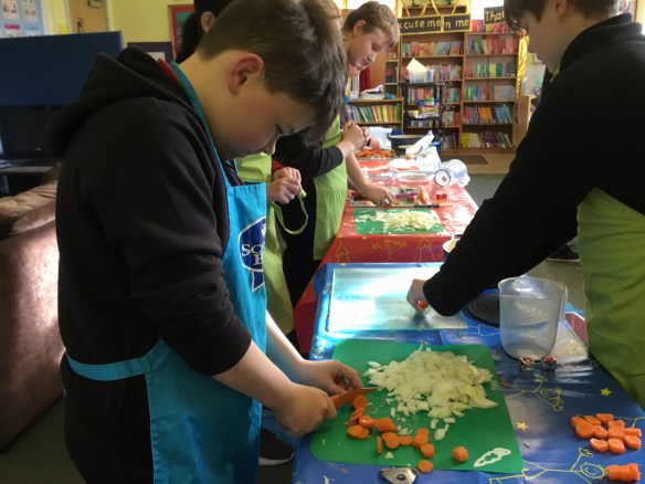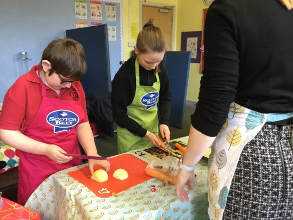All groups have now completed making stovies. Recipes for all but today’s group are available in the recipe page above (some are still to be fully completed.) We hope you have enjoyed them at home too. Next week we will all make pizzas as a final end of term fun activity while next term we hope to tie in a cooking session up at the High School Home Economics department.