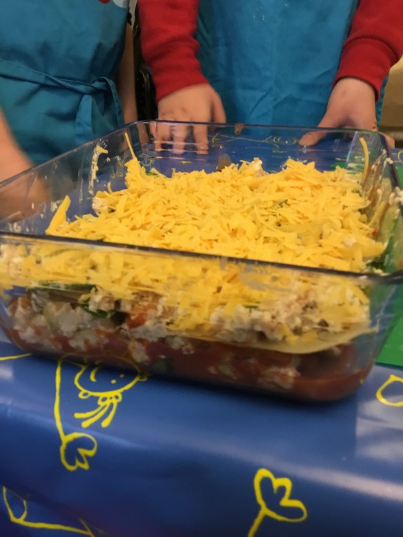 Today, the first two groups made their lasange with a difference – using sausage instead of mince so that they experienced something different from our previously made stovies. It smelt delicious!