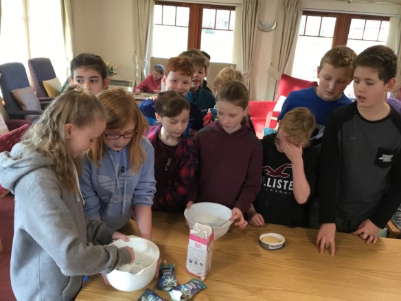 We learned a lot of lessons about how to make blue icing: you need a lot of icing sugar but hardly any water! Eventually, thanks to some kind helpers, we got the icing to work. Putting the white cross on was a lot harder than it looks in the photos!